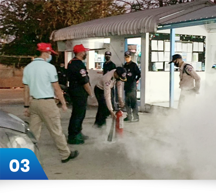 โดยหลังจากมีการรับนโยบายจากผู้ว่าจ้าง เรามะมีการอบรมพนักงาน รักษาความปลอดภัย ในทุกด้าน คือ Service mild ,ลักษณะงานในหน่วยงานนั้น ๆ, การรักษาความปลอดภัย ,การเตรียมแผนเผชิญเหตุ, หลักการใช้กำลัง, การดับเพลิง, การปฐมพยาบาล ,การจัดการจราจร